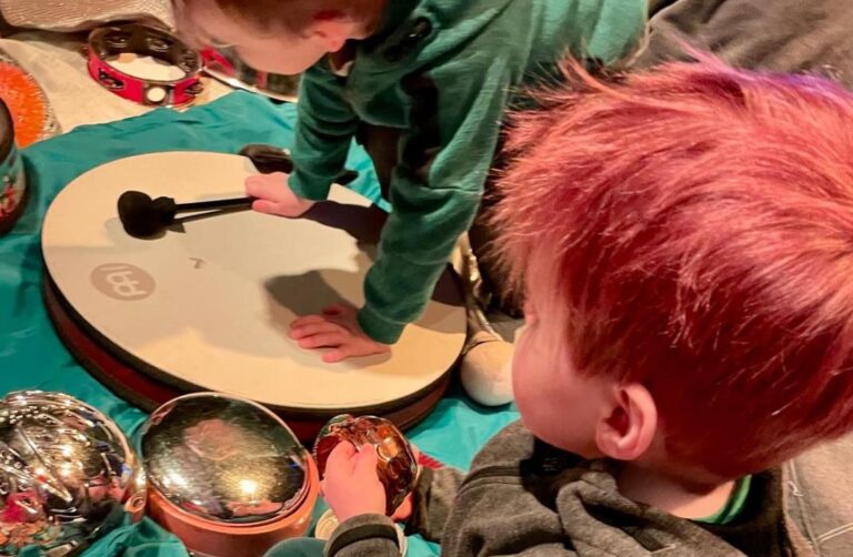 Sound Canvas is a playful new sound experience for young children created by artist and early years practitioner, Sophie Cooper. Children aged 5 and under, along with their grown-ups, are invited to take part in creative activities while enjoying a relaxed and beautifully lit immersive environment accompanied by the music of Raymond Scott and live improvised trombone by Sophie herself.